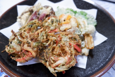 天麩羅 野菜、かき揚げ 鶏天 野沢菜とツナの和え物 素麺 ご馳走様☆ 全体画像なしです。 &nb···