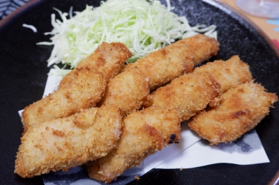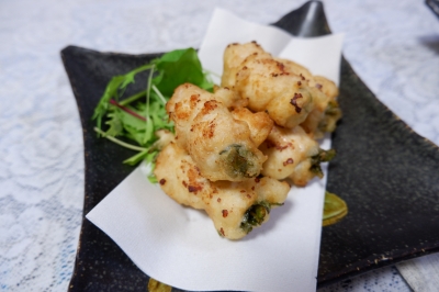 ササミの梅シソ巻き 天麩羅です。 サラダ 野菜スープ 栃尾揚げのピザ風チーズ焼き ご馳走様☆ おまけ 夫が···