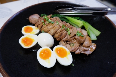 煮豚 薬味 スープ 麺 ご馳走様☆ おまけ お昼にケンタを食べた男性陣はおなかが減っていないと言うので簡単···