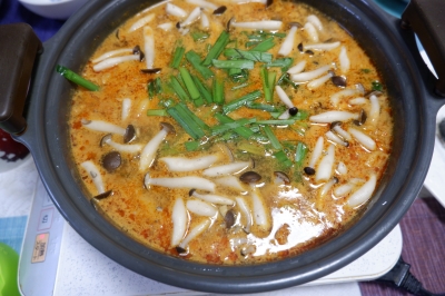 ズンドゥブチゲ鍋 卵まだ入れてません。 卵 サーモンのカルパッチョ キンパプ 中巻き位の太さで2本。 ご馳走様☆ &nbs···